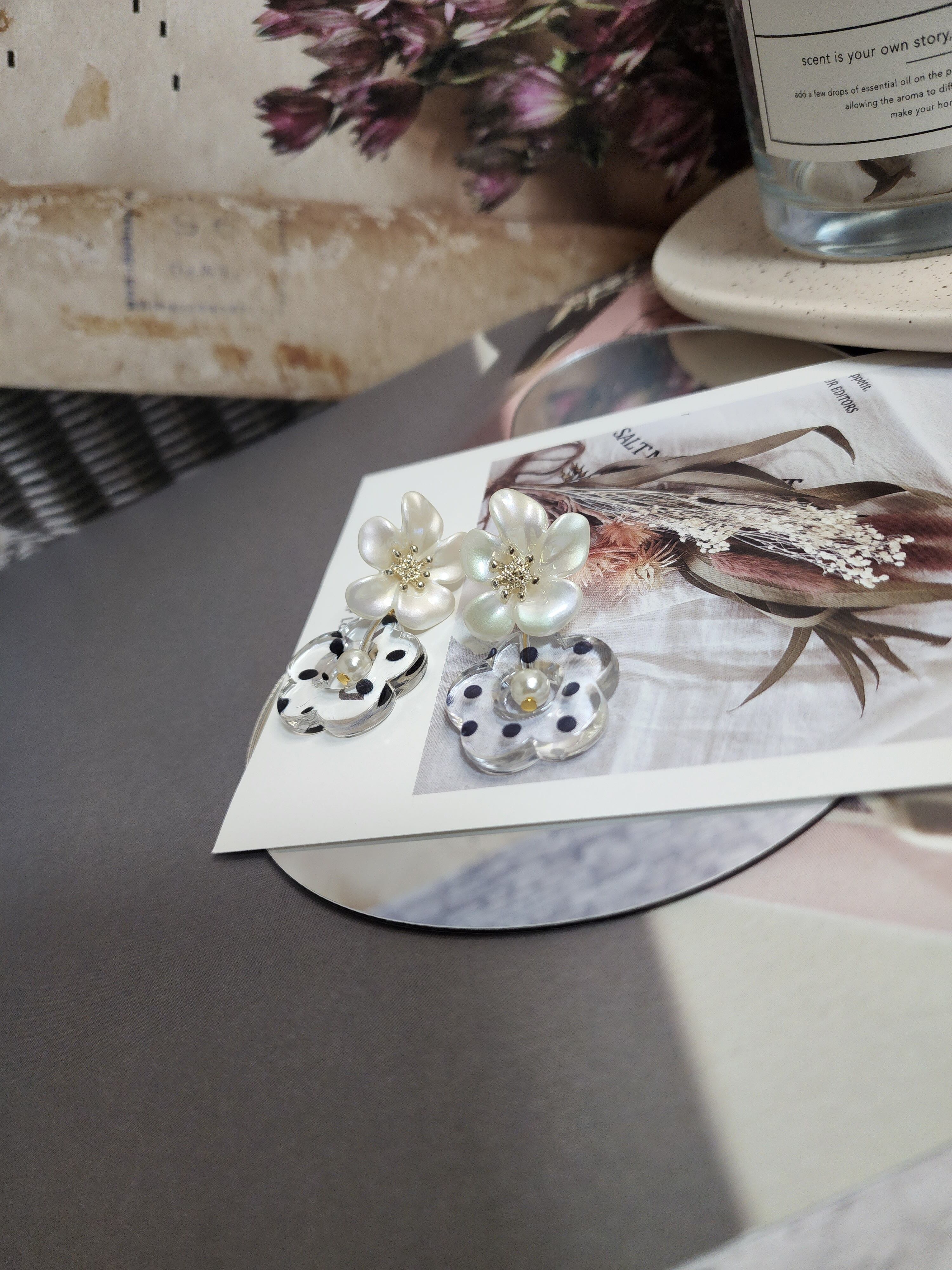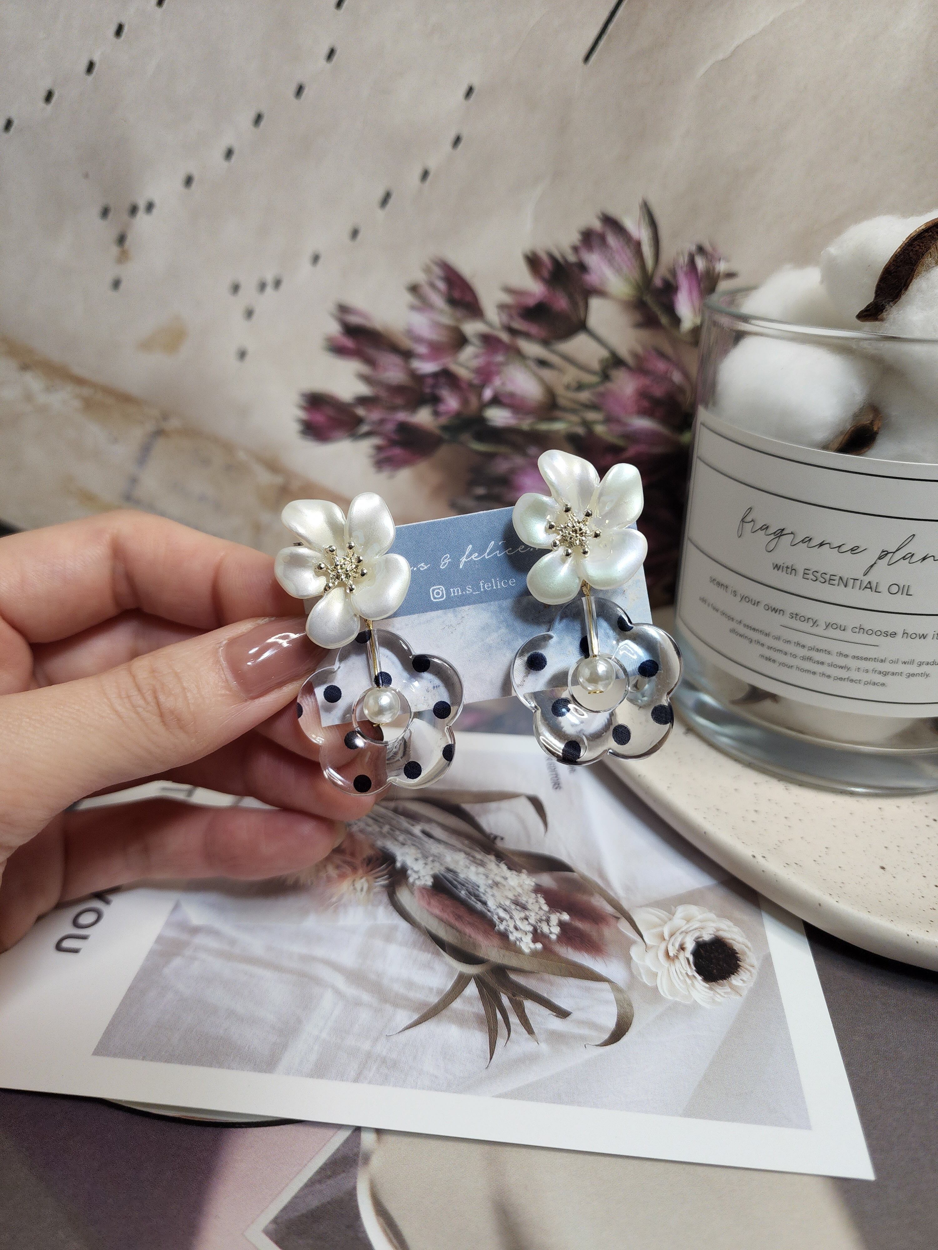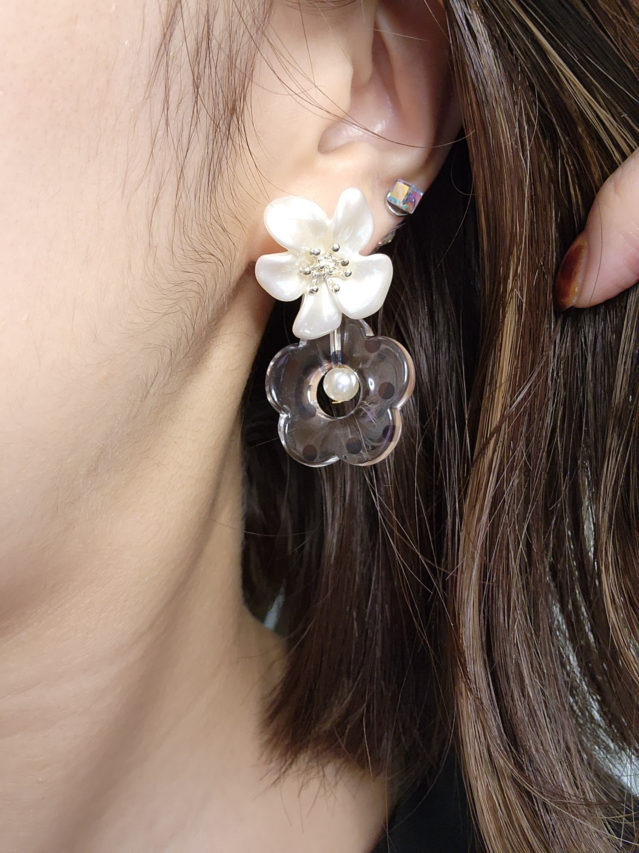 dot pattern flower pierce【ドット柄/フラワー/お花/パール】