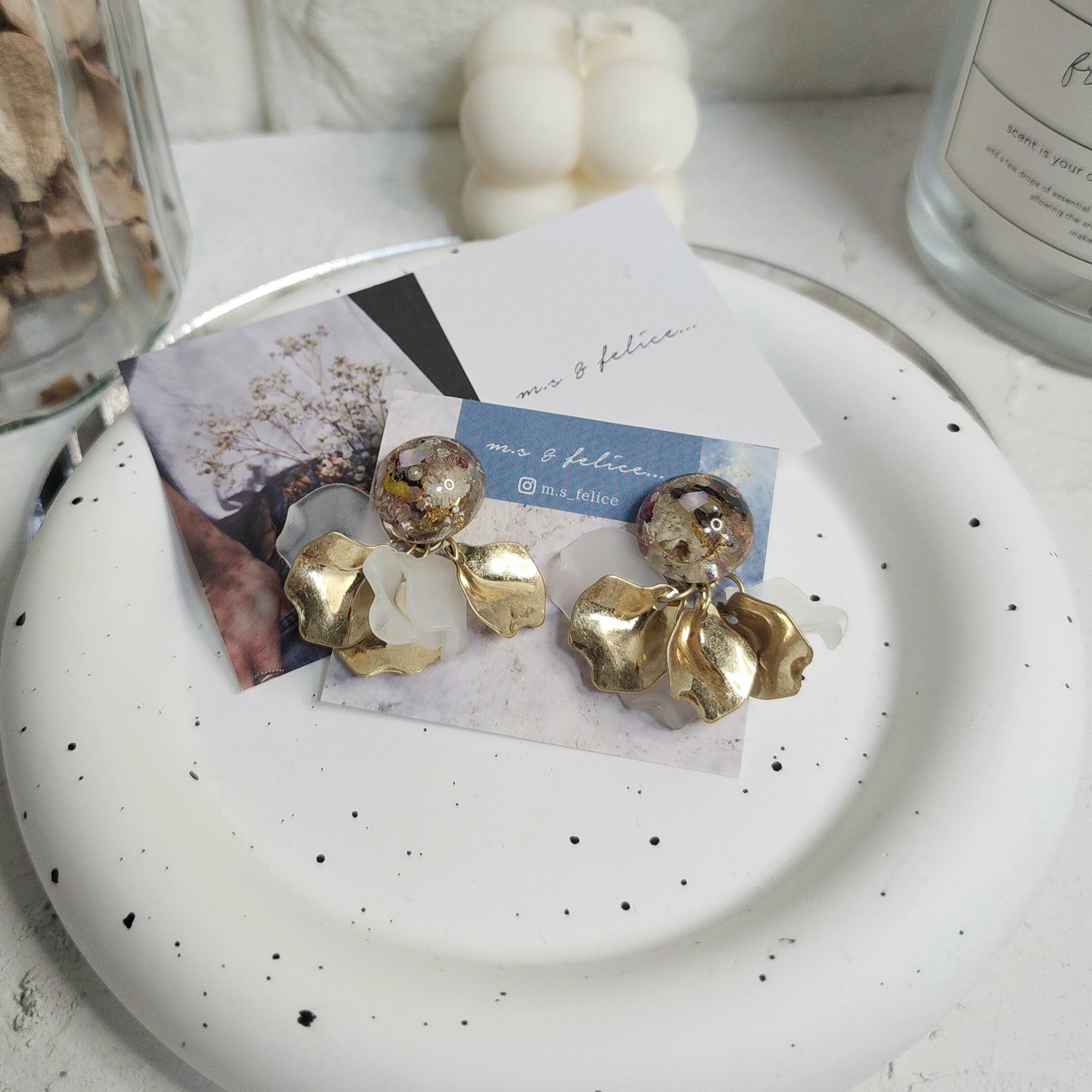 flower pierce③【レジン/ドライフラワー/くすみ花びら/フラワーデザイン/お花デザイン/ピアス/イヤリング/ゴールド/サージカルステンレス】